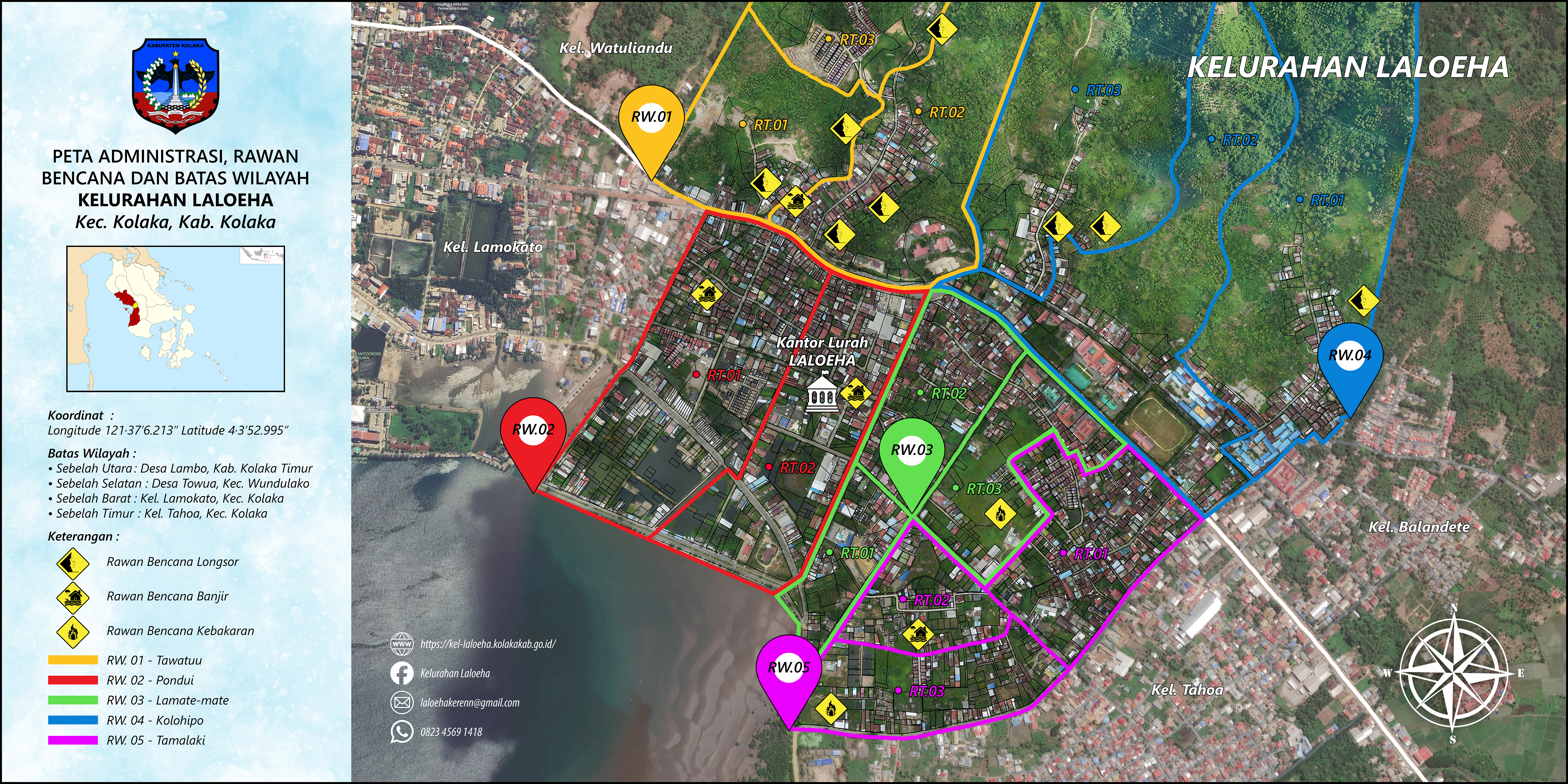 Peta Administrasi, Rawan Bencana dan Batas Wilayah Kelurahan Laloeha
